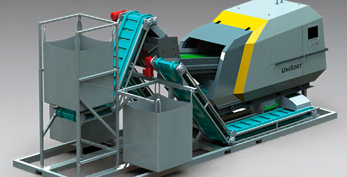 La solución de clasificación flexible (NIR o clasificación por color) : recuperar materias primas secundarias puras sin contaminantes es una tarea compleja. Lograr un reciclaje de alto valor requiere que incluso las partículas de tamaño más pequeño se separen de manera confiable de acuerdo con sus tipos y colores. El UniSort Flake es adecuado para sus materiales de grano fino, ya sea que utilice NIR o clasificación por color de plásticos, metales o minerales.